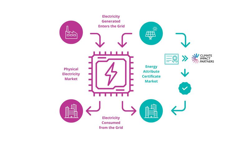 Electricity is the same regardless of how or where it was generated. Every company powered by electricity from the grid draws down that physical electricity from the same mix of sources, which includes renewable and non-renewable sources.