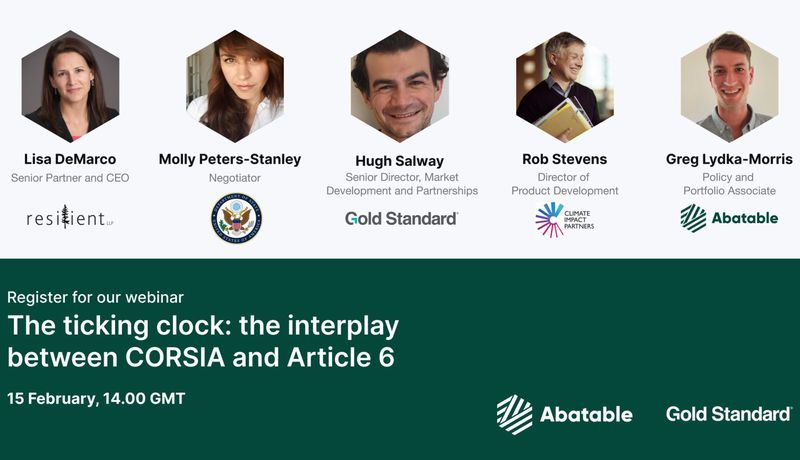 Rob Stevens, our Director of Product Development, will be sharing his insights at the upcoming webinar "The ticking clock: the interplay between CORSIA and Article 6" hosted by Gold Standard and Abatable.