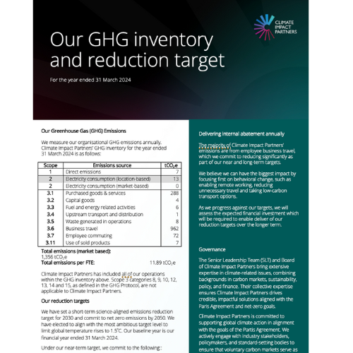In the meantime, the following document establishes Climate Impact Partners’ GHG inventory and reduction targets FY24: